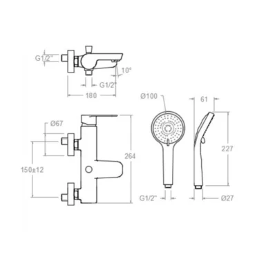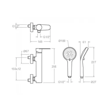 Set Monomando Tina Ducha Expuesta incluye Ducha Urben Modelo Squadra ABS
