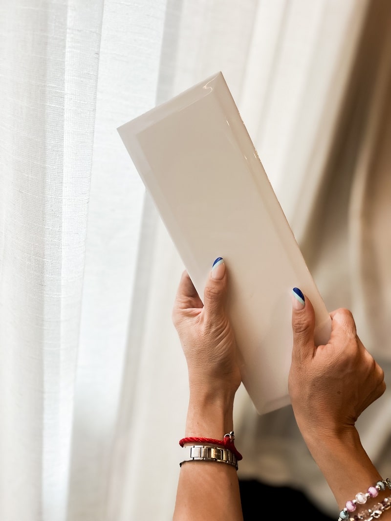 ✓ Cerámica tipo metro, con bisel y terminación brillante.