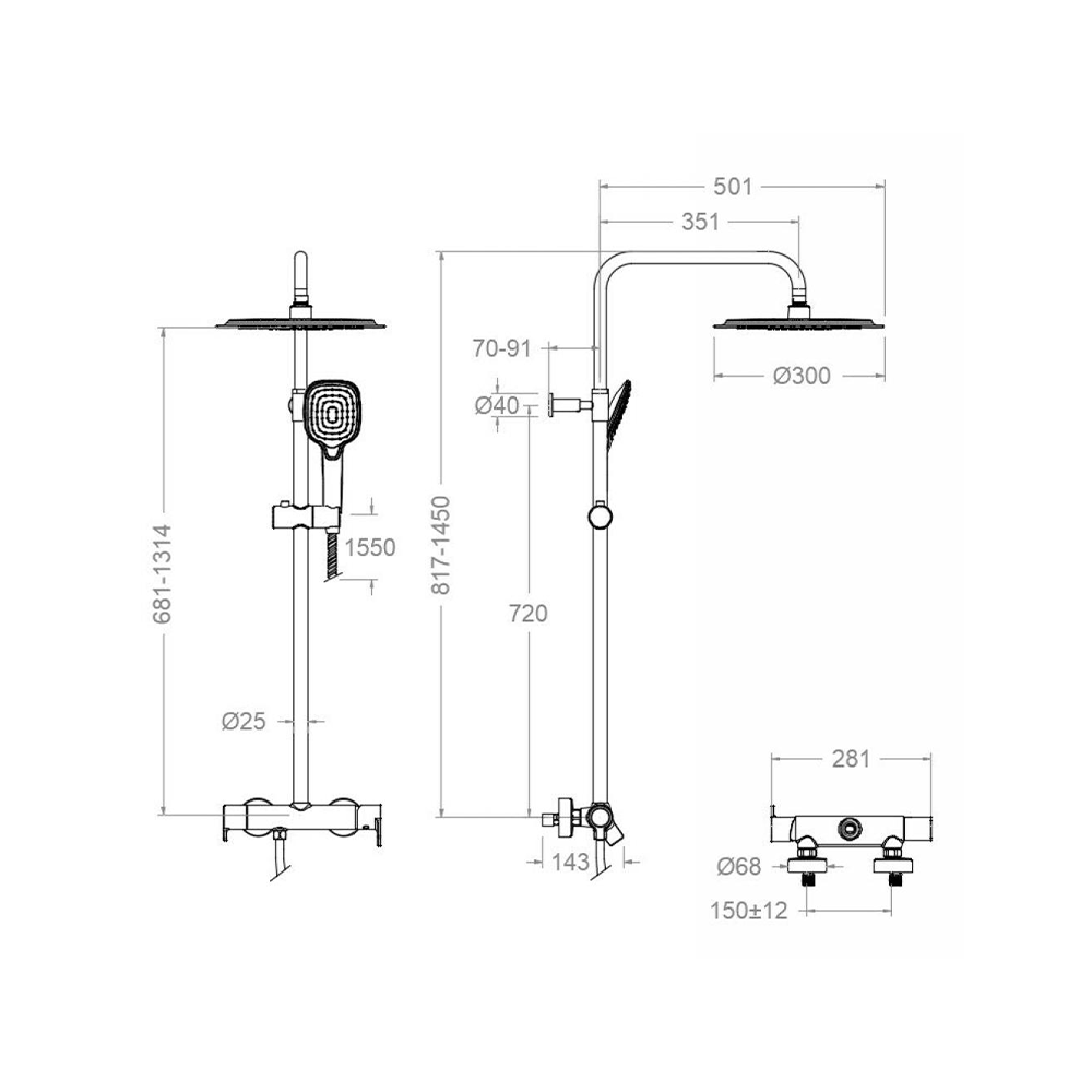 Columna de ducha telescópica que incluye monomando, rociador redondo 300×300 mm. Incluye, sistema Hot Block de seguridad antiquemaduras y el sistema de ahorro de agua S2 mediante la apertura de la manecilla en dos fases. Acabado cromado brillante de alta resistencia por su tratamiento electrostático sobre galvanizado. Procedencia europea de la reconocida marca Ramon Soler.