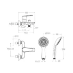 Conjunto monomando baño-ducha con equipo de ducha, incluye el sistema de ahorro de agua S2 mediante la apertura de la manecilla en dos fases y el sistema Termostop Block de limitación de la temperatura máxima del agua caliente. Acabado cromado Diamond Finish de alta resistencia.