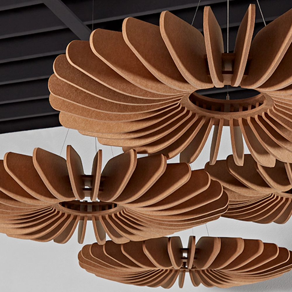 Nuestra lámpara decorativa mejora la acústica de tu espacio de trabajo, de estudio o de entretención reduciendo el rebote del sonido y con ello disminuyendo la fatiga, favoreciendo la productividad y el bienestar de sus usuarios.