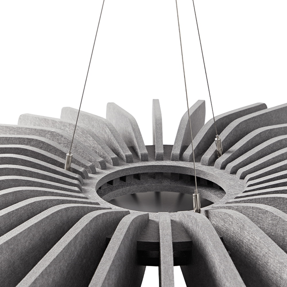 Nuestra lámpara decorativa mejora la acústica de tu espacio de trabajo, de estudio o de entretención reduciendo el rebote del sonido y con ello disminuyendo la fatiga, favoreciendo la productividad y el bienestar de sus usuarios.