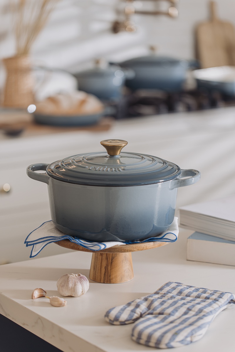 Su acabado en Dark Blue con pomo dorado aporta un toque de lujo accesible y sofisticación a cualquier ocasión, desde un picnic chic hasta una cena elegante. Compatible con todo tipo de cocinas, incluida la de inducción, y apta para horno.