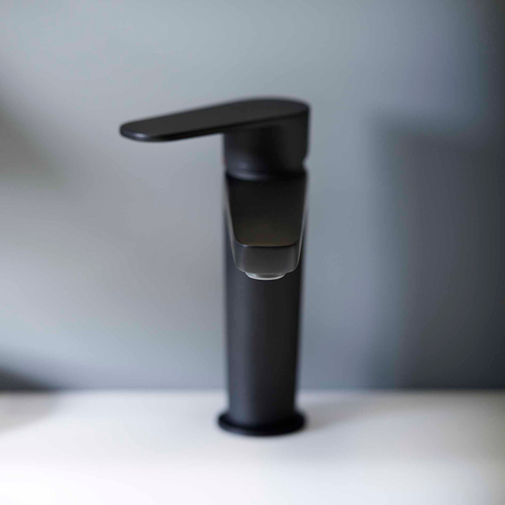Grifo de lavamano bajo de procedencia europea de la reconocida marca Ramon Soler. Acabado negro mate. Quality Finish de alta resistencia por su tratamiento electrostático sobre galvanizado. Sistema S3 de ahorro de agua del 50% y energético, limitador de temperatura y sistema anticorrosión patentado