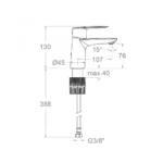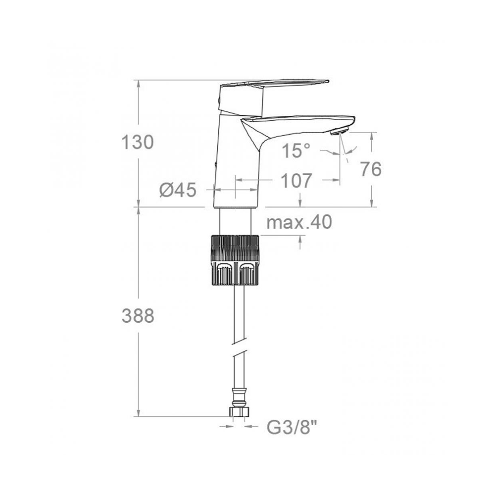 Monomando de lavabo, incluye el sistema de ahorro de agua S2 mediante la apertura de la manecilla en dos fases y el sistema Termostop Block de limitación de la temperatura máxima del agua caliente. Acabado cromado Diamond Finish de alta resistencia.