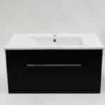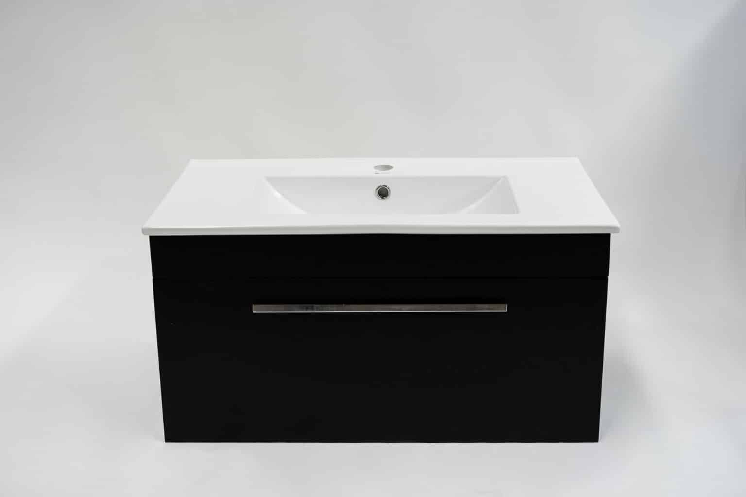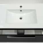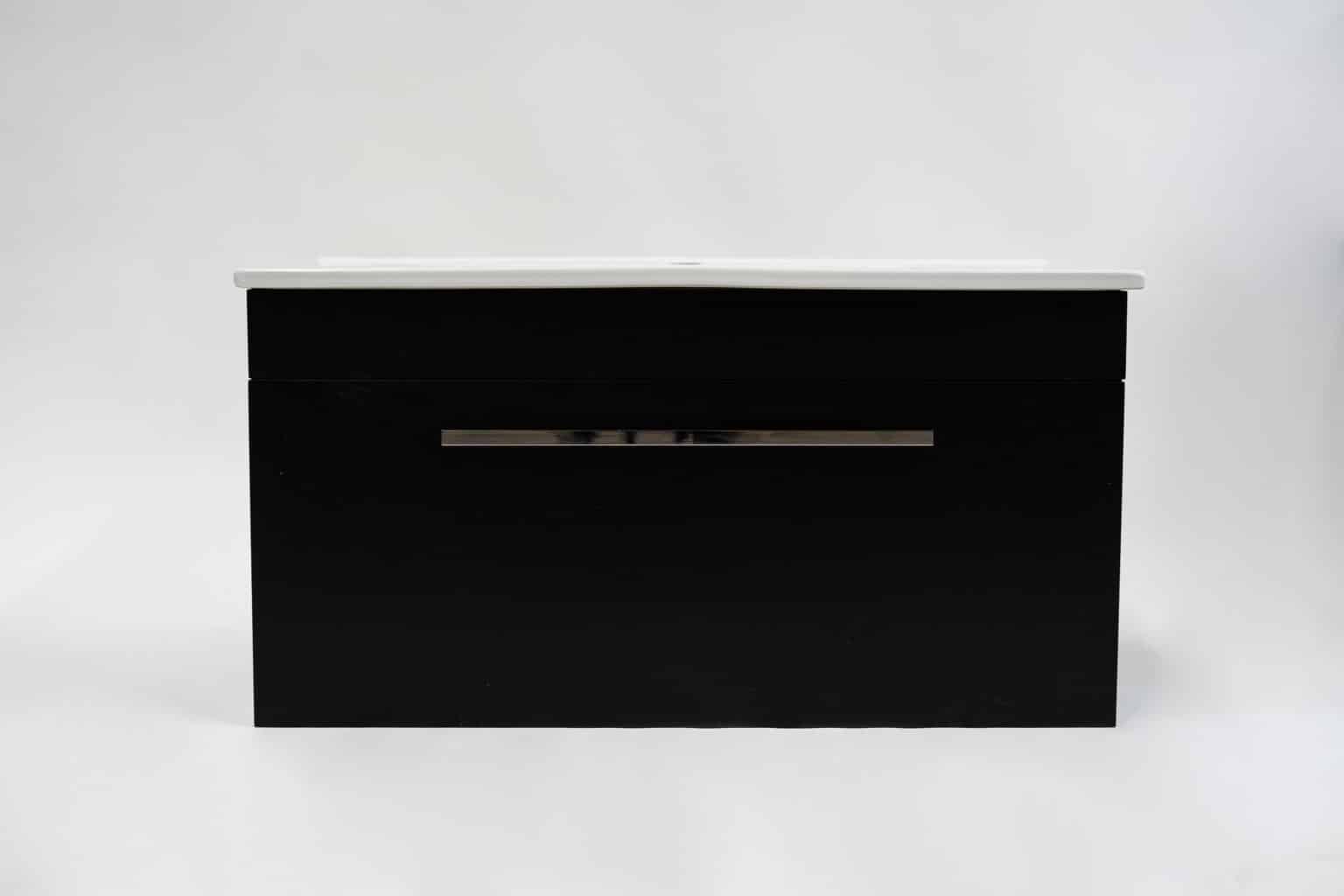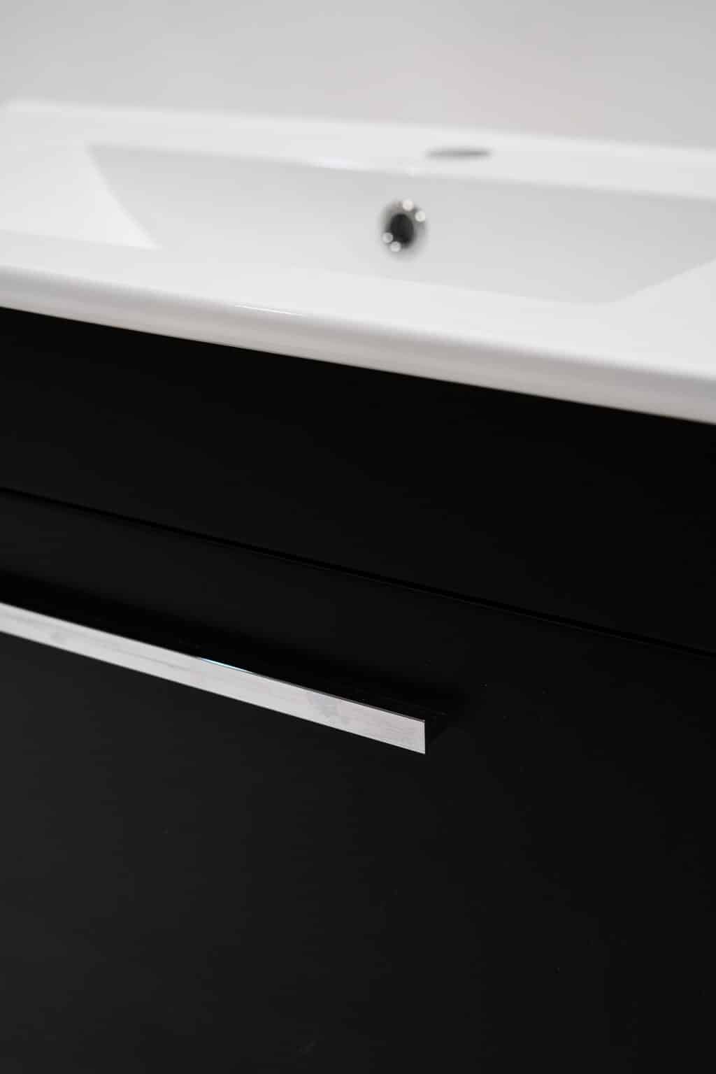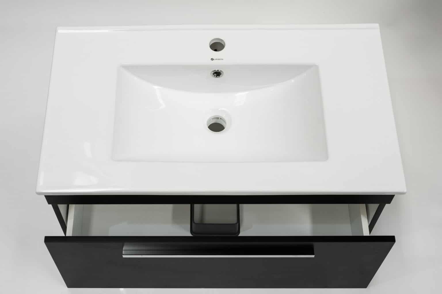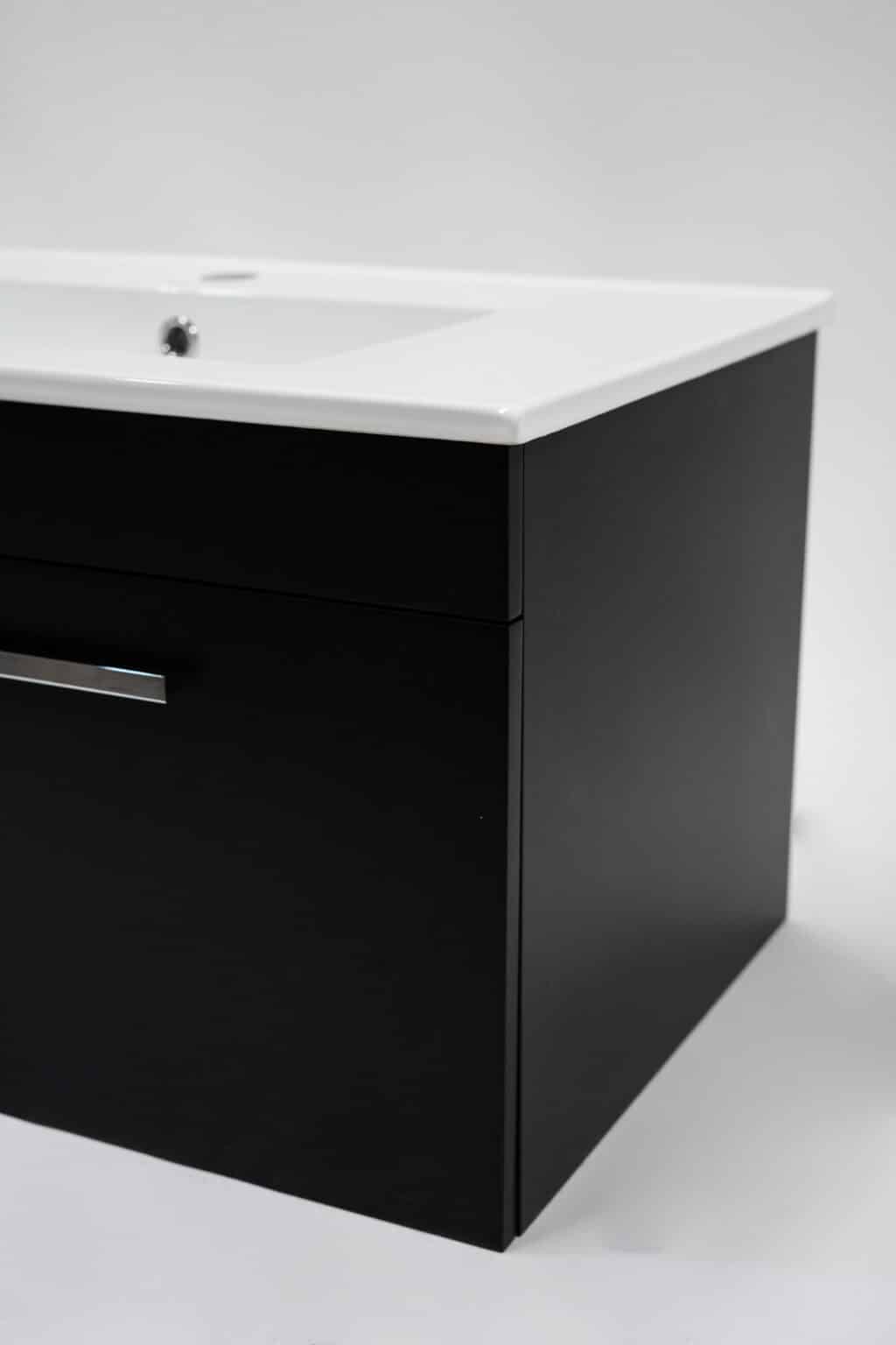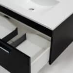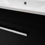 La medida de este mueble es de 590x450x400mm y viene en colores: Blanco, Gris o Negro todos con terminación Mate. También disponible en medidas de 790 mm de ancho. Este mueble incluye lavamanos y es para ser instalado a muro con una carga máxima aproximada de 30 kilos. Su cajón viene con sistema de cierre lento.