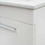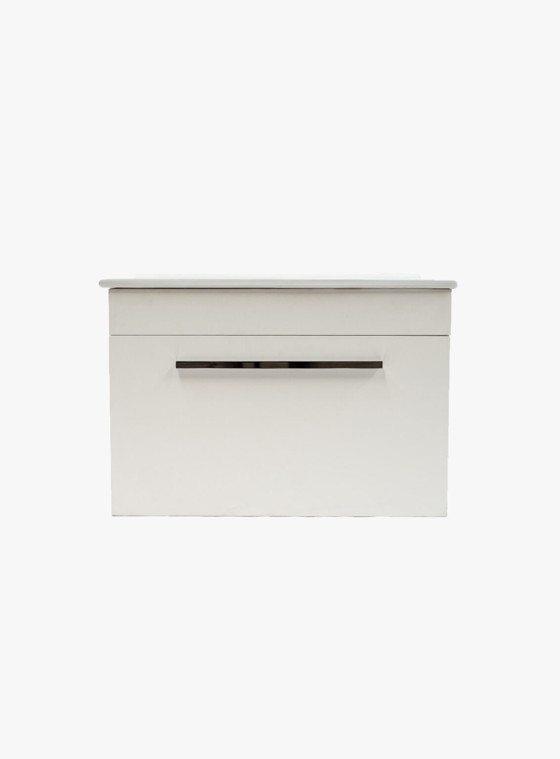 Mueble de baño de instalación suspendida con un cajón de cierre lento. Mueble viene con tirador satinado.