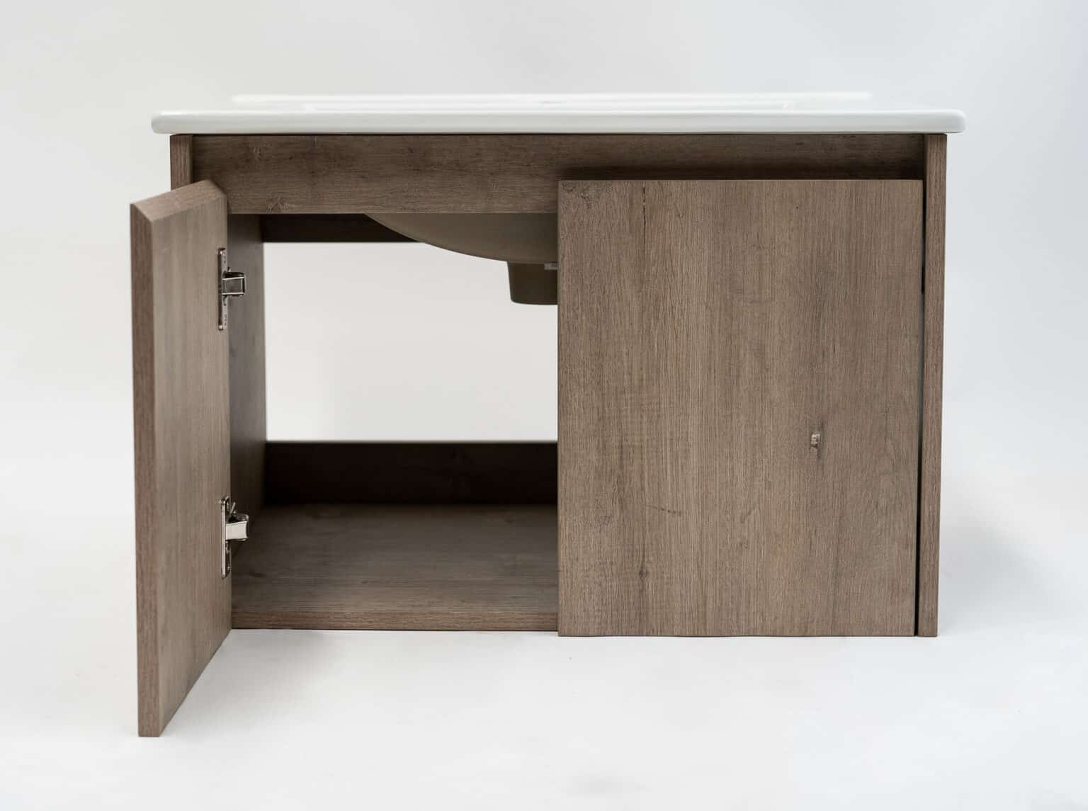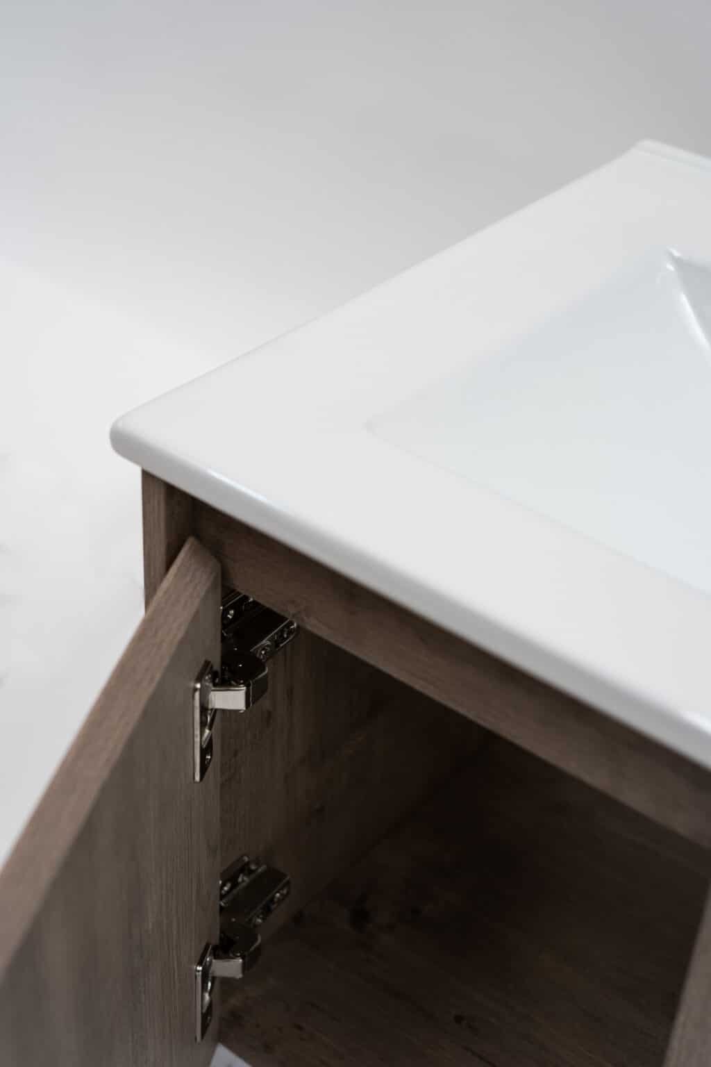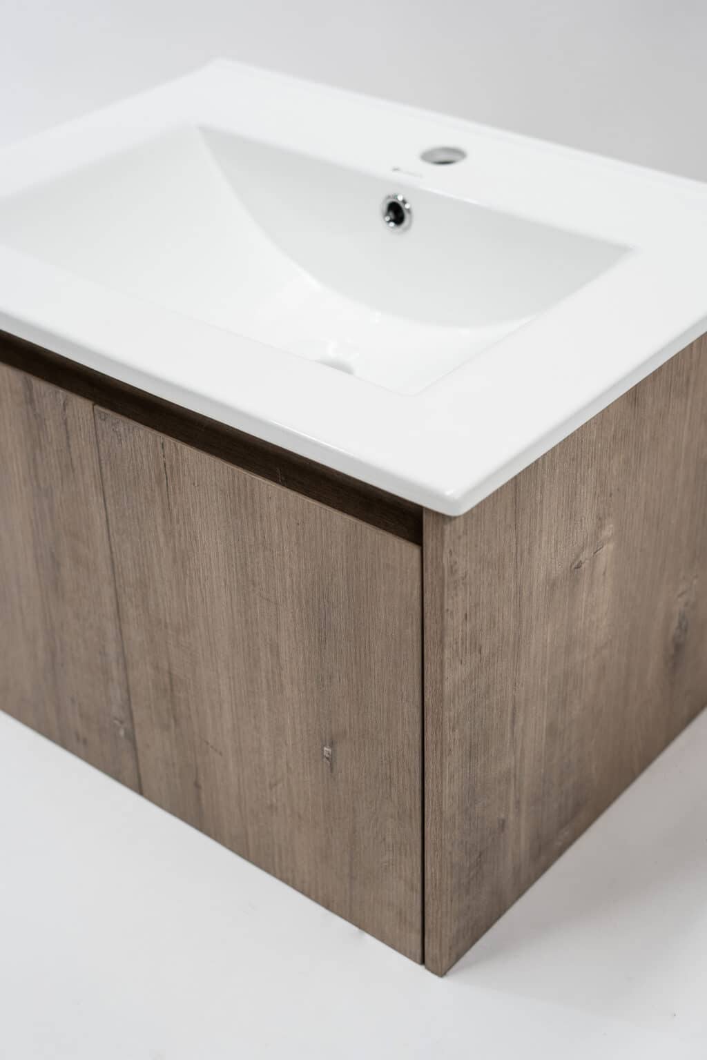La medida de este mueble es de 790x450x390mm y viene en color Rose Wood o en Ancient Oak, también disponible en medidas de 590 mm de ancho. Este mueble incluye lavamanos y es para ser instalado a muro con una carga máxima aproximada de 30 kilos. Sus puertas vienen con sistema de cierre lento.