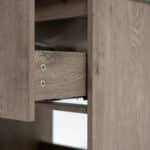 La medida de este mueble es de 790x450x550mm y viene en color Rose Wood o Ancien Oak, también disponible en medidas de 590 mm de ancho. Este mueble incluye lavamanos y es para ser instalado a muro con una carga máxima aproximada de 30 kilos. Su cajón viene con sistema de cierre lento.