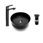 ✓ Combo Lavamanos Sobre Cubierta, Griferia Alta Negra Mate y Desague Pop Up Sin Rebalse Black