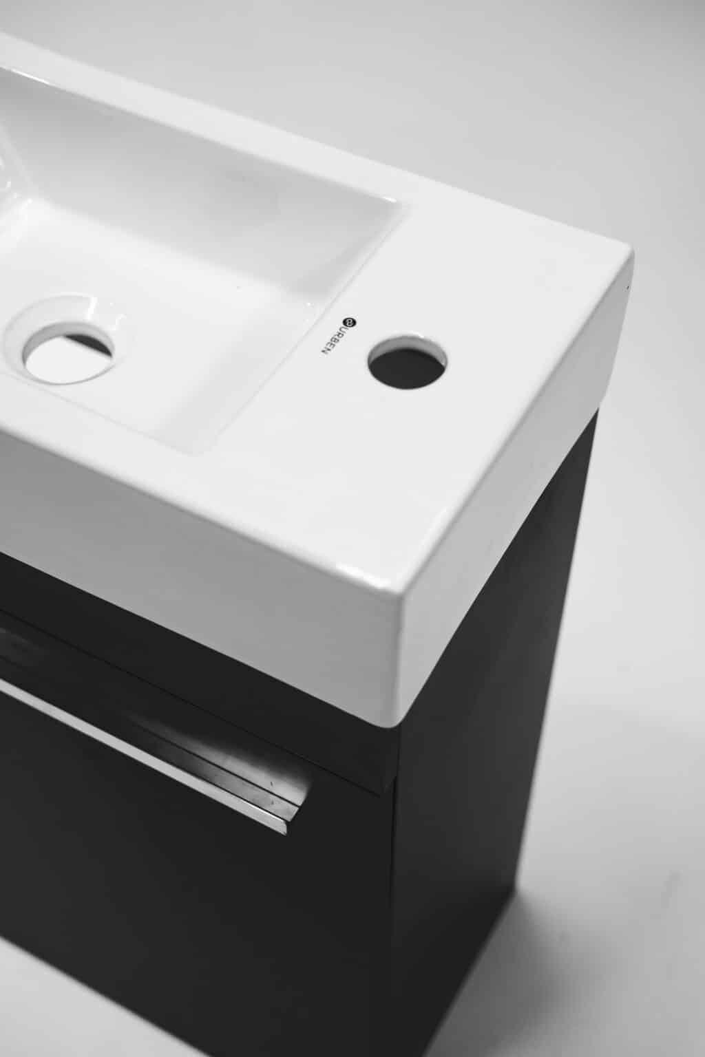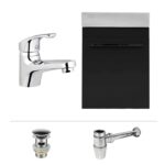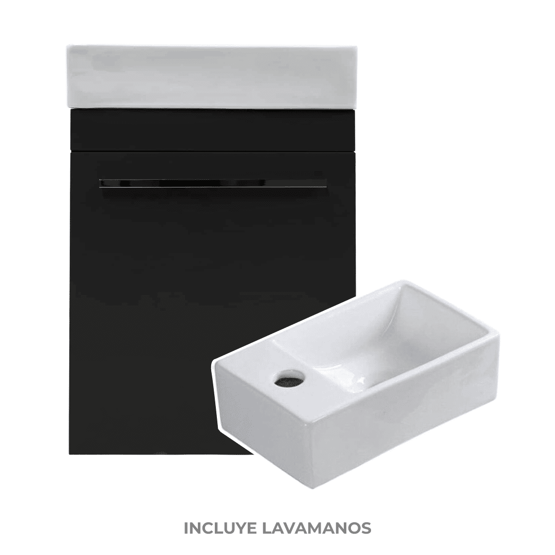 ✓ Promoción incluye Mueble Mini Cabinet Pel color Black Mate + Grifería Monomando Lavamanos Bajo Urben modelo Santorini de ABS + Sifón + Desagüe