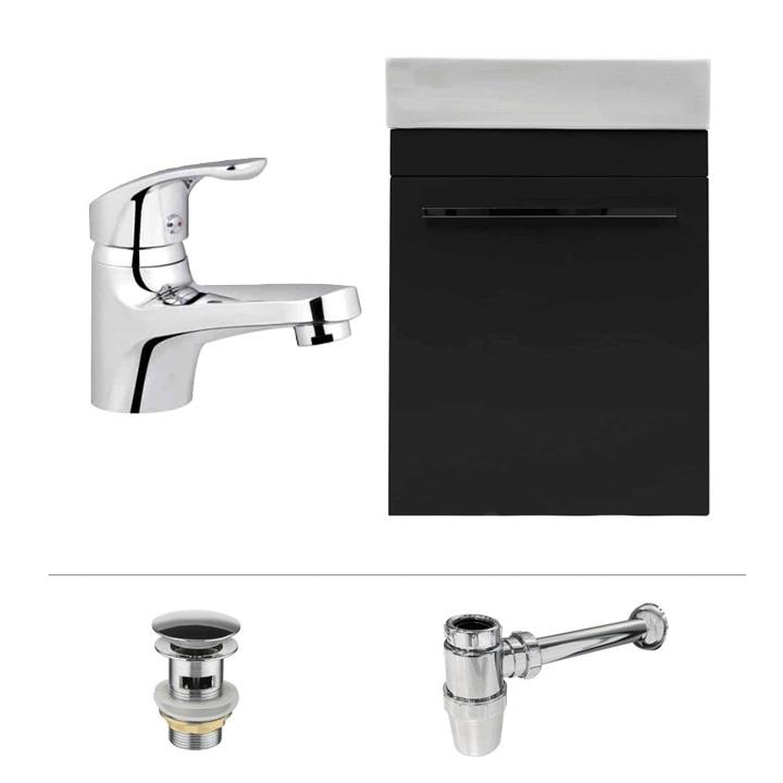 Pack Mueble de Baño Pel Black con Grifería, Sifón y Desagüe