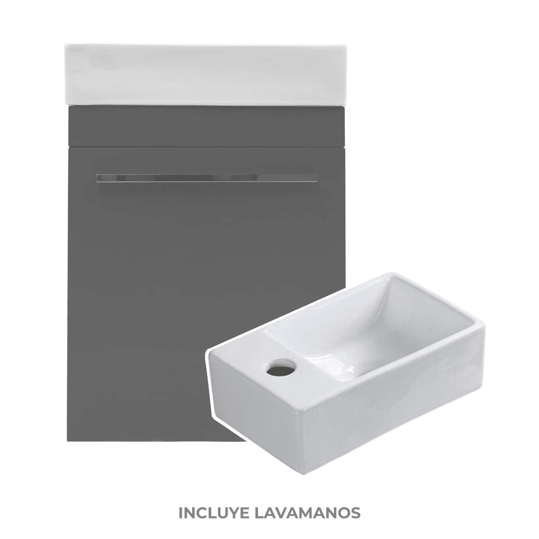 ✓ Promoción incluye Mueble Mini Cabinet Pel color Grey + Grifería Baja modelo Santorini ABS + Sifón + Desagüe