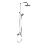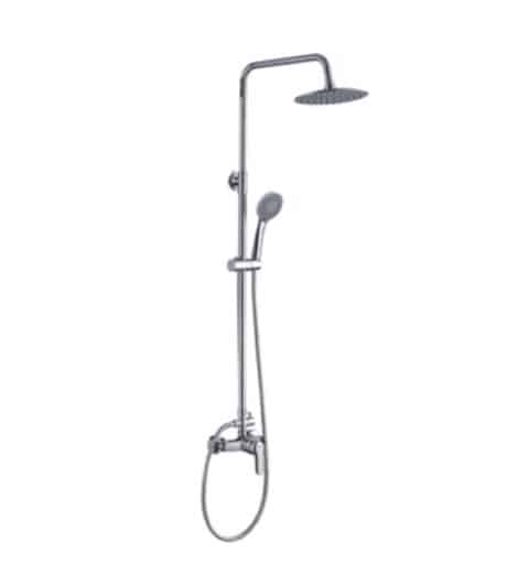 Receptáculo Cuadrado Mercury de medida 70X70 cm con Desagüe Incluido (codigo 112925), Mampara Esquina 70×70 Urben (codigo 112821) y Columna de Ducha (codigo 113403).