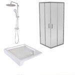 ✓ Pack Mampara Esquina + Receptaculo Cuadrado de 70×70 cm y Columna de Ducha