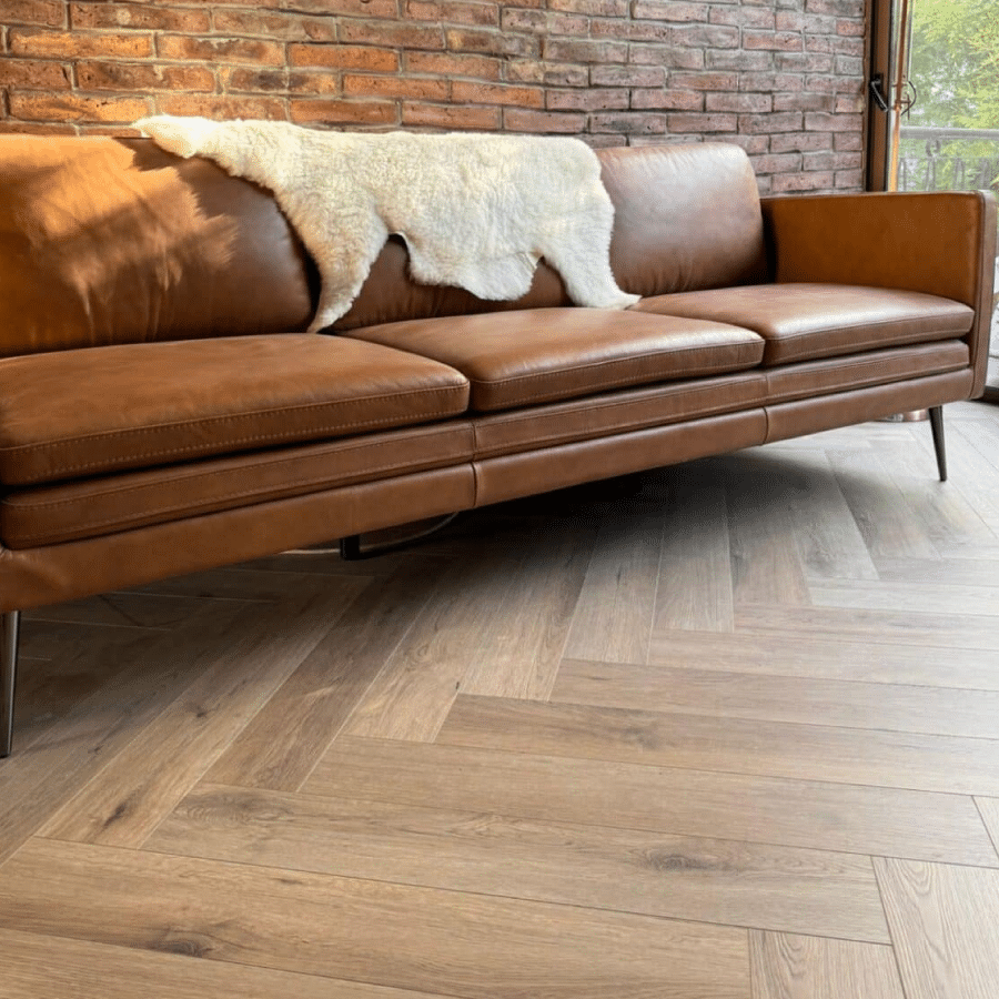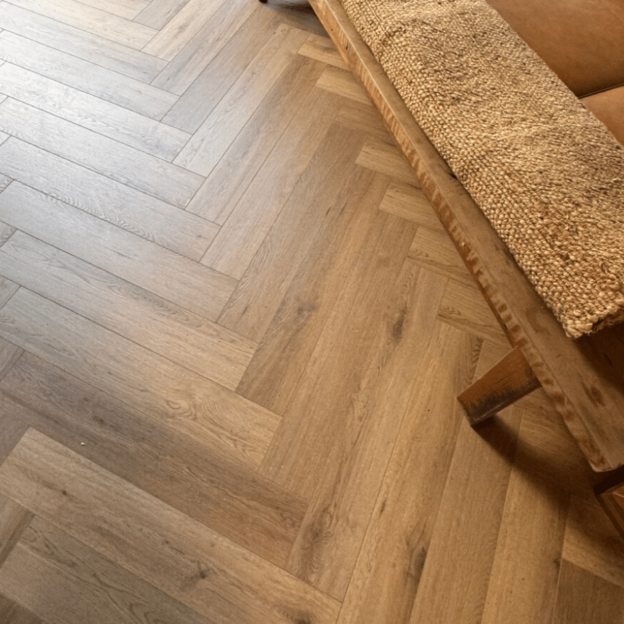 Si quieres instalar este piso en Herringbone, debes combinar este piso de lado A con lado B y considerar una pérdida un poco mayor a la habitual, de aproximadamente 20% en tu proyecto.