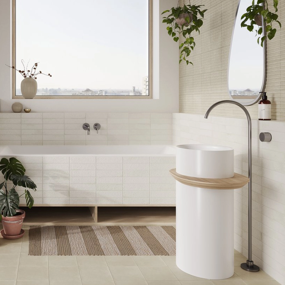 La colección Miniature Fornace nace de una atenta investigación sobre el ladrillo de terracota, uno de los elementos constructivos por excelencia, que forma parte del tejido arquitectónico desde la antigüedad. El proceso de cocción y modelado confiere a cada pieza su propia originalidad en cuanto a variación cromática y relieve superficial. El pequeño formato 6×24 cm redescubre este material atemporal y devuelve una versión cerámica Fiel a los detalles estéticos de los orígenes, pero actualizada en términos de solidez y resistencia. Miniature Fornace revive en la propuesta de gres porcelánico la antigua belleza de un material amasado y modelado por las manos del hombre