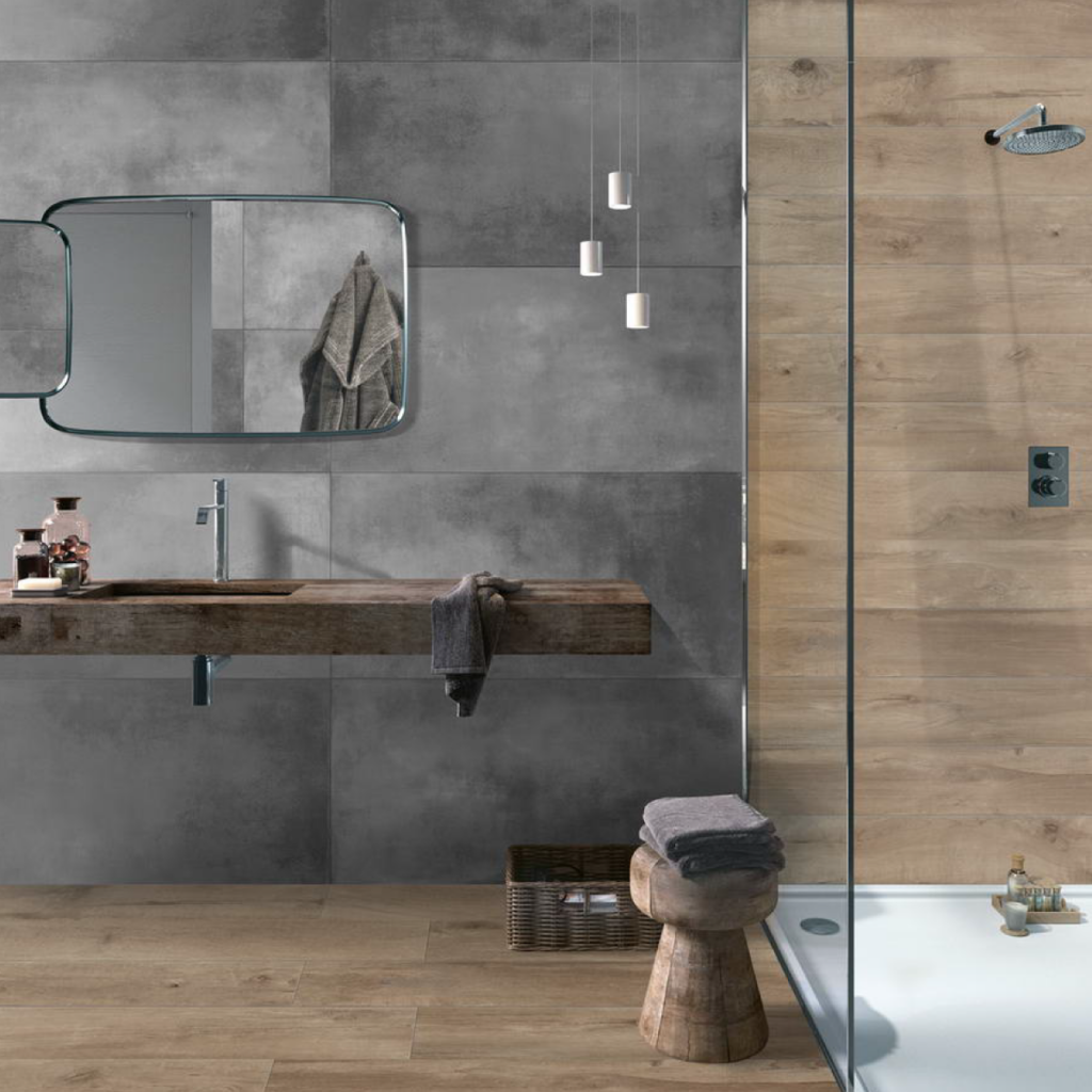 Las series CEMENTS y ROCKS son Porcelanato Gres Esmaltado Rectificado, con look cementicio y pétreo, disponibles en formatos 60×60, 60×120 y 20×120, todos en terminación Mate, Rectificado.