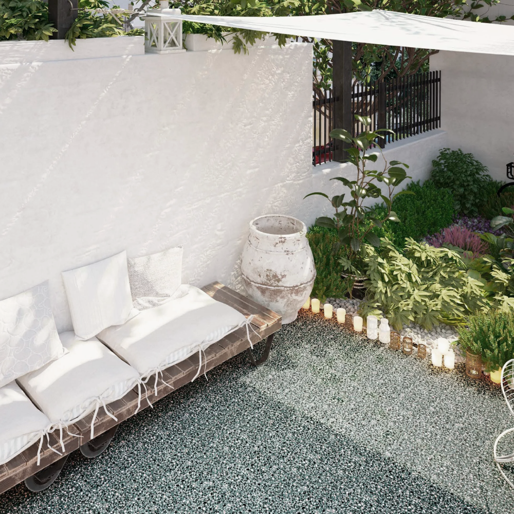 Elvas con su look terrazo genera innumerables posibilidades de decoración en cualquier ambiente tanto en pisos como muros, y está recomendado para uso interior. Su formato es de 20 cm x 20 cm y espesor 7 a 8 mm aproximadamente