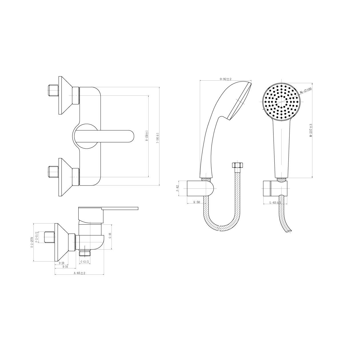 ✓ Griferia de Ducha incluye Ducha Manual , Manguera Flexible de 1.75 mts y Soporte.