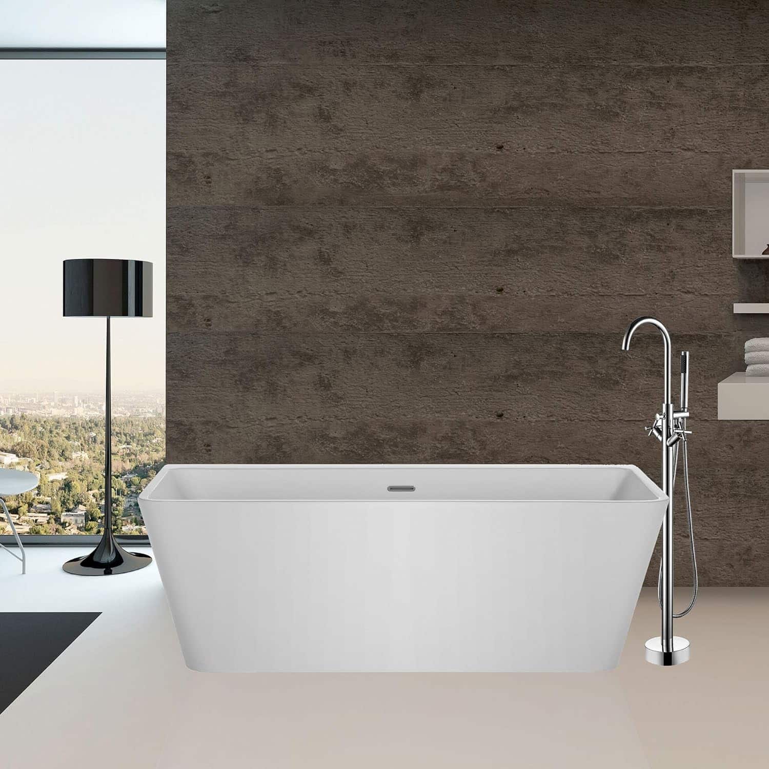 La tina Self Standing modelo Coda tiene líneas rectas y modernas. Fabricada 100% acrílico blanco brillante será un llamativo punto focal en tu baño y te dará momentos de relax que no olvidarás.