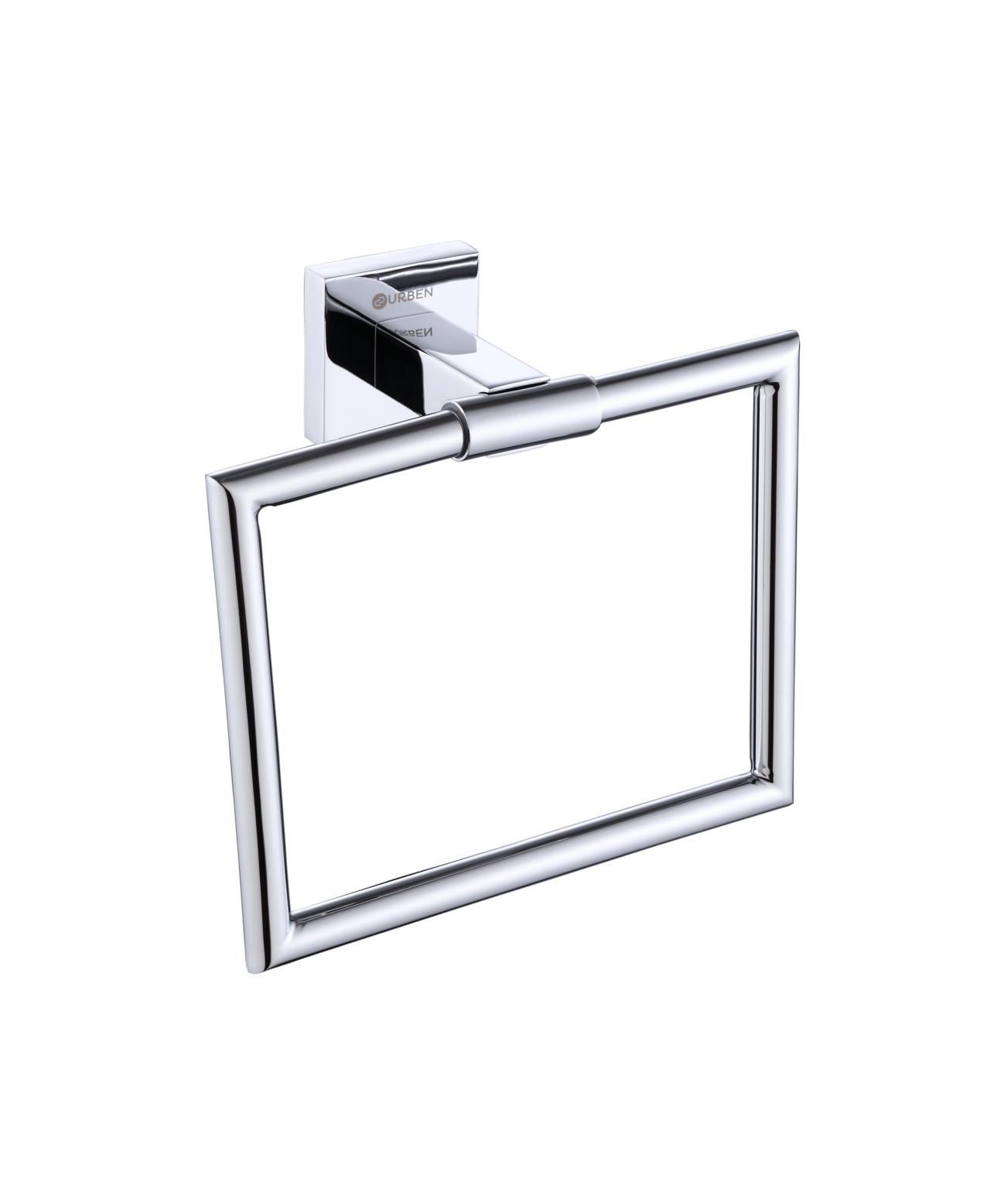 El toallero rectangular de la línea Eternity, de lineas cuadradas y modernas, Es un accesorio de semiempotrar. Está fabricado de Zinc, con acabado en cromo.